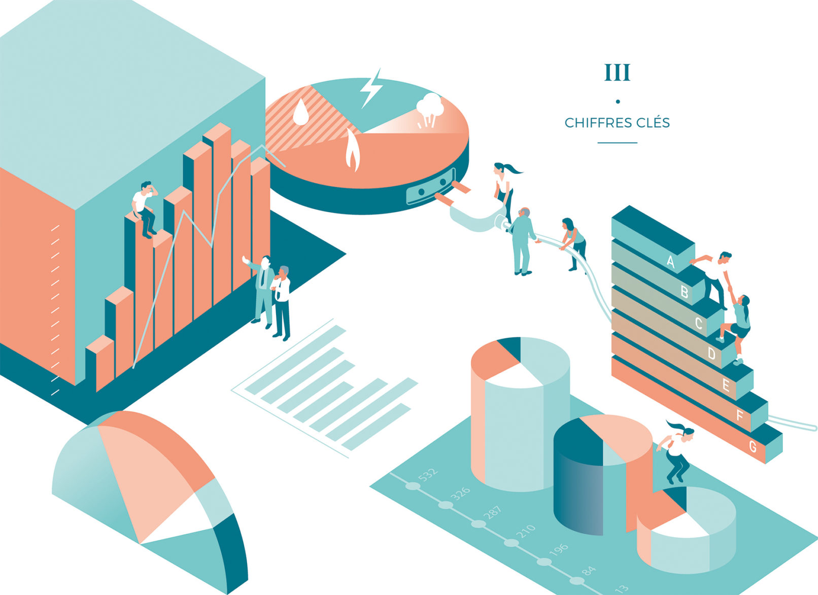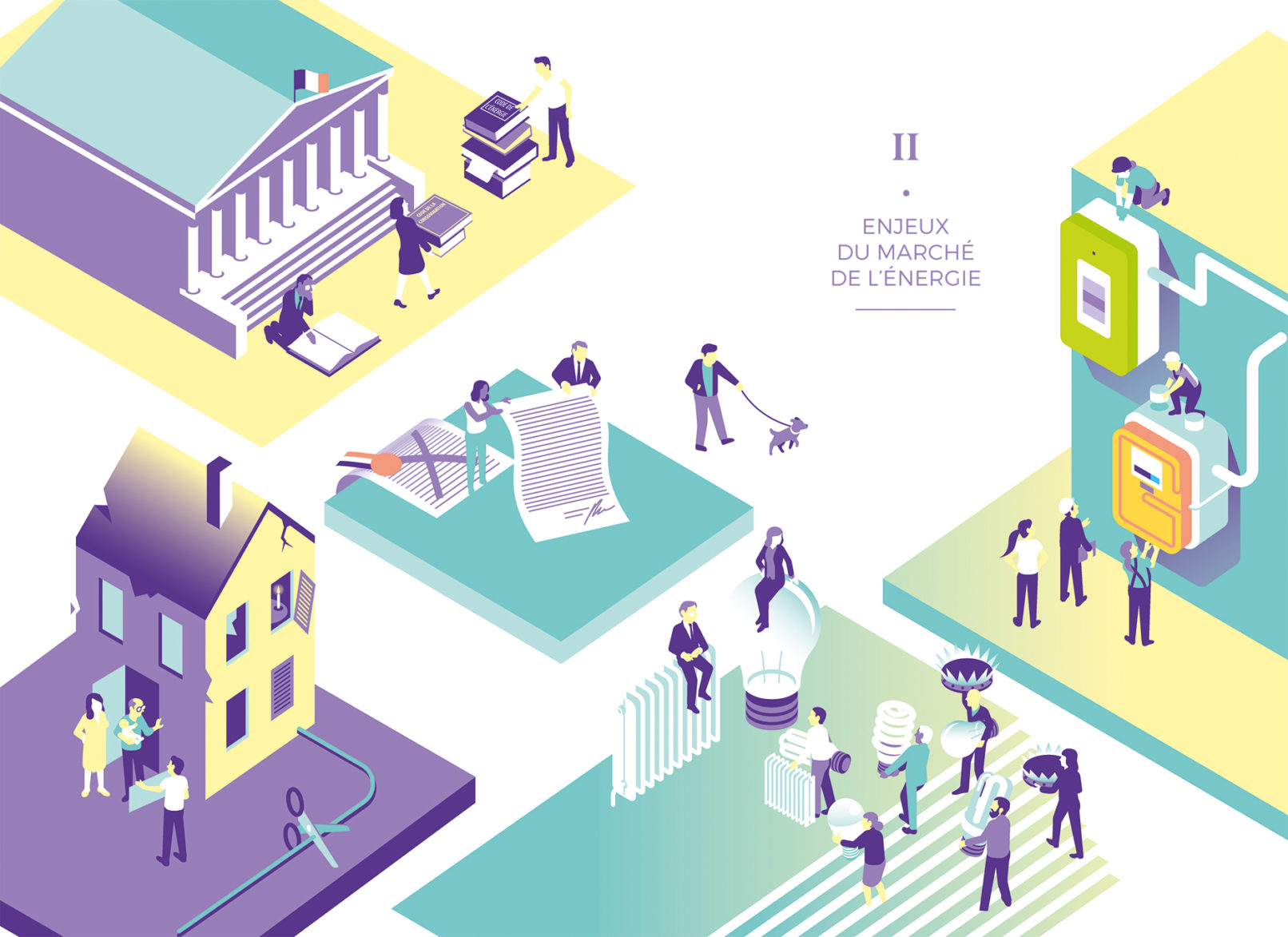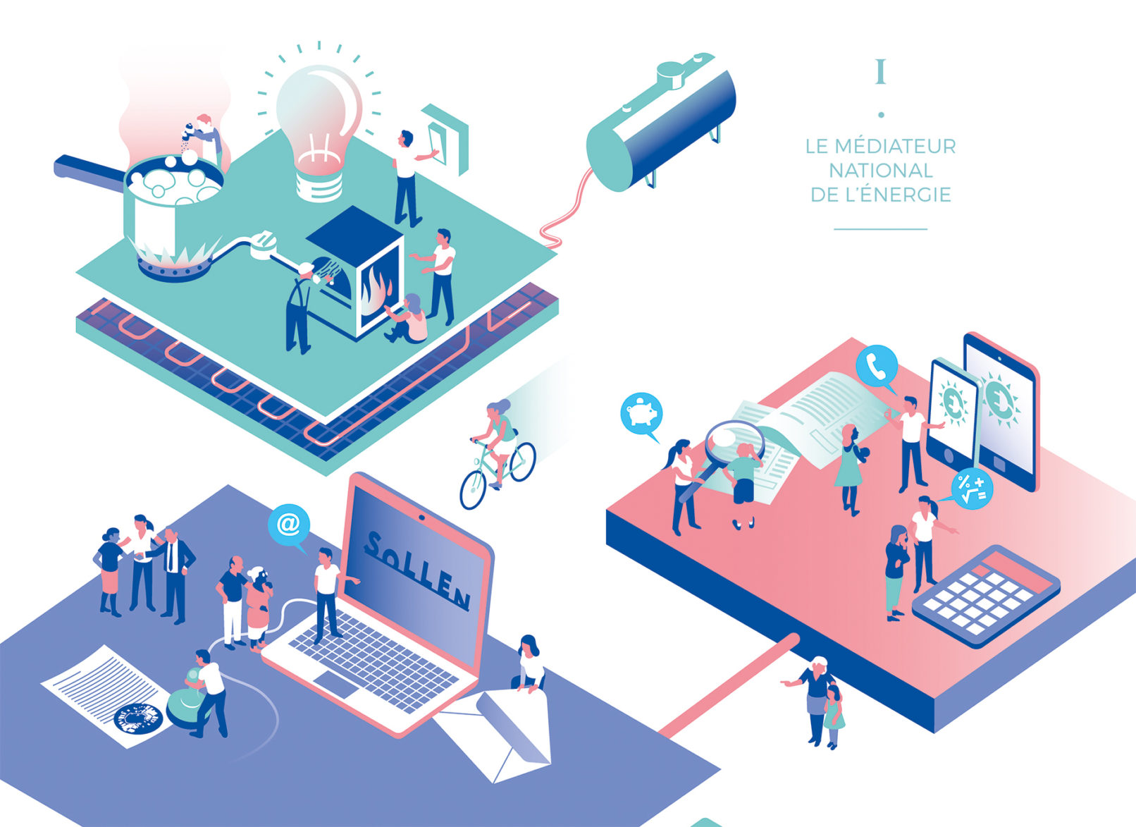 Illustrations pour le rapport d’activité 2015 du Médiateur National de l’Énergie.